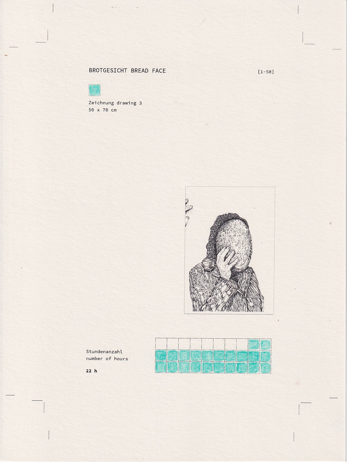 With the drawings HARD WORK, I explore different processes of artistic work itself. The starting point was my video WORK BY THE PIECE, in which I asked about my mother's body movements during her many years of factory work. How can piecework wage labor—visible in the physical memory of her hands—be contrasted with my creative work? I address this issue with the working time protocol, which—similar to time cards—records the necessary tasks and working hours required for the drawings. This ialso refers to the title HARD WORK, which humorously and realistically links wage labor and artistic work. The individual sheets refer to texts, images, and songs that deal with classism that are important references in my artistic practice. For example, the title “Distinction” refers to Pierre Bourdieu, “If You Want My Future, Forget My Past” quotes a line from a Spice Girls song, and “Working Class Daughter (refuse to surrender)” refers to the book of the same german title, as well as to my own family history. The cycle of works questions the visibility of work, but at the same time refers to the (in)comparability of different work systems.