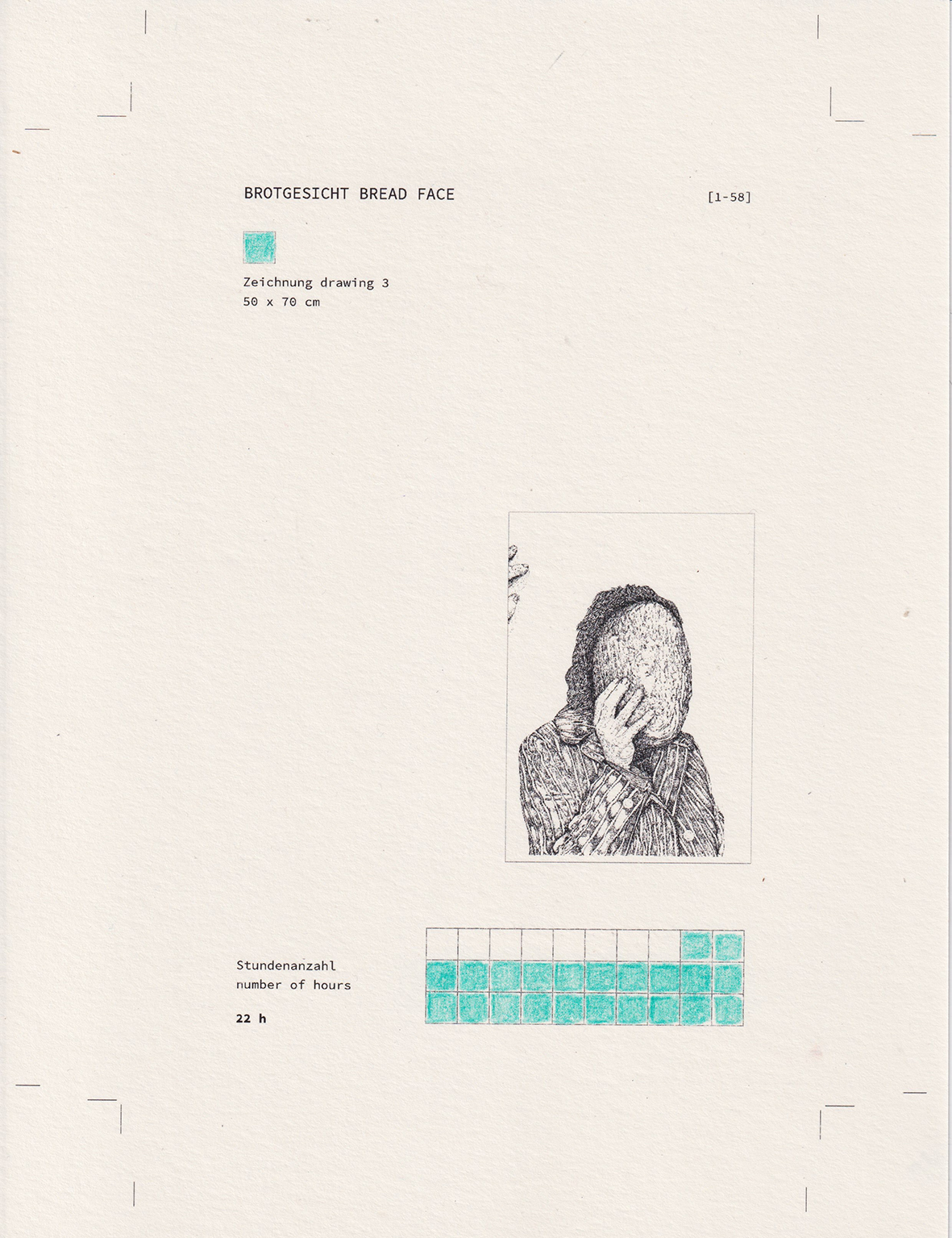 Lassen sich Bildfindungen durch ein protokollarisches System nachbilden? Wird das Fortschreiten des Denkens und emotionalen Handelns - im Vergleich zwischen Zeichnungen und Arbeitszeitprotokoll - (be)greifbar, lesbar, nachvollziehbar? Wie und wodurch entstehen Verdichtungen, Sprünge, Risse, Bohrungen?